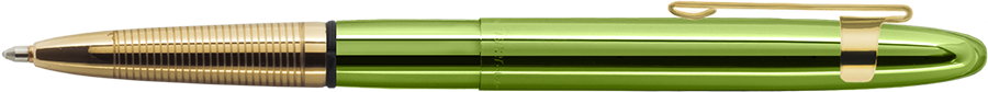 The original Bullet Space Pen was conceived in July of 1948. Paul Fisher was soon machining a new pen design shaped from solid aluminum. It became our first Fisher ball point pen, the 400 Bullet Pen, and arguably the most popular pen of the twentieth century. This pen is now all brass with an aurora borealis green translucent finish.