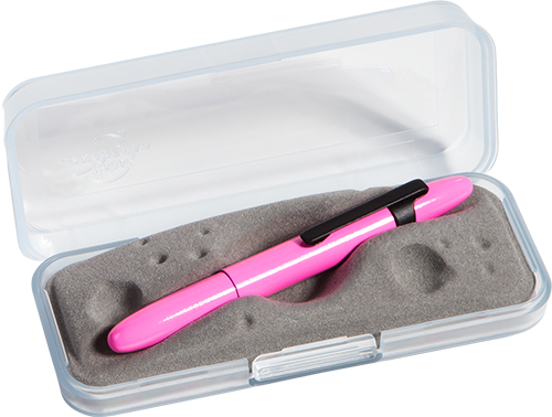 The original Bullet Space Pen was conceived in July of 1948. Paul Fisher was soon machining a new pen design shaped from solid aluminum. It became our first Fisher ball point pen, the 400 Bullet Pen, and arguably the most popular pen of the twentieth century. This pen is now all brass with a Special Pink finish. Cited as an outstanding example of industrial art, the classic design of the Fisher Bullet Pen has been exhibited for years in the New York Museum of Modern Art. The Bullet's timeless styling has been the topic of many art books and magazine articles. Often imitated, but never duplicated, the Fisher Bullet continues to be our most popular pen.