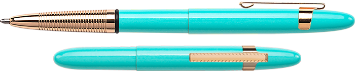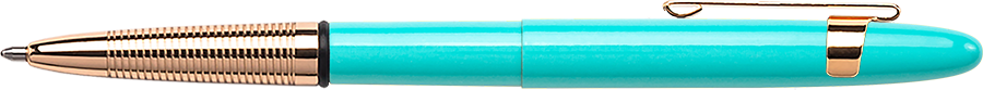 400TBL-GFGGCL – Tahitian Blue Bullet Space Pen w/ Gold Finger Grip & Gold Pocket Clip