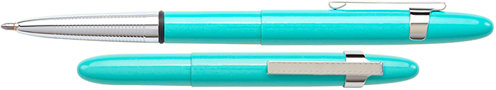 400TBLCL – Tahitian Blue Bullet Space Pen w/ Chrome Finger Grip & Pocket Clip