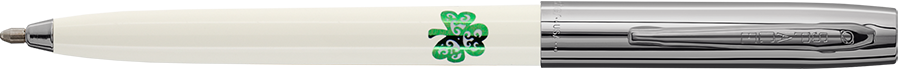 Always carry luck with you! This white barrel Cap-O-Matic Space Pen is hot stamped with a green shamrock.