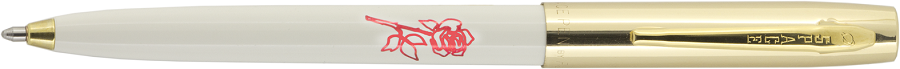 This white barrel Cap-o-Matic Space Pen is hot stamped with a red rose!