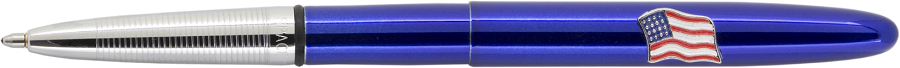 The original Bullet Space Pen was conceived in July of 1948, Paul Fisher was soon machining a new pen design shaped from solid aluminum. It became our first Fisher ball point pen, the 400 Bullet Pen, and arguably the most popular pen of the twentieth century. This pen is now all brass with a translucent blue moon finish with an American Flag Emblem.