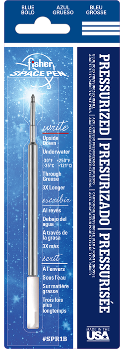 Fisher Space Pen’s Sealed Pressurized Ink Cartridge performs in temperatures from -30º F to +250º F, underwater, in zero gravity, at any angle–even upside down! The ultimate in dependability!