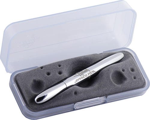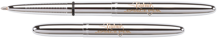 The original Bullet Space Pen was conceived in July of 1948 by Paul Fisher, who was soon machining a new pen design shaped from solid aluminum. This became our first Fisher ball point pen, the #400 Bullet Pen, and arguably the most popular pen of the twentieth century. This pen is now composed of all brass with a chrome finish.