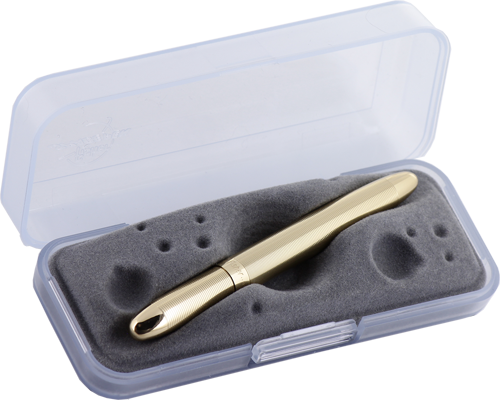 While appearing to be gold, this space pen is actually a beautifully lacquered brass bullet space pen with machined grooves throughout the body and cap. The machined grooves give this bullet space pen a rigid texture that enables a nice grip while writing. The finish, though it may appear to be delicate, is truly a durable finish, something Fisher Space Pen considers to be a standard amongst all bullet space pens. Whether in the boardroom or on the beach, the beautiful finish of the 400G is sure to turn heads.