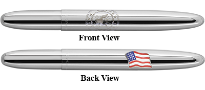 W600-NAV-AF - Chrome Bullet Space Pen with Laser Engraved NAVY Insignia & American Flag Emblem