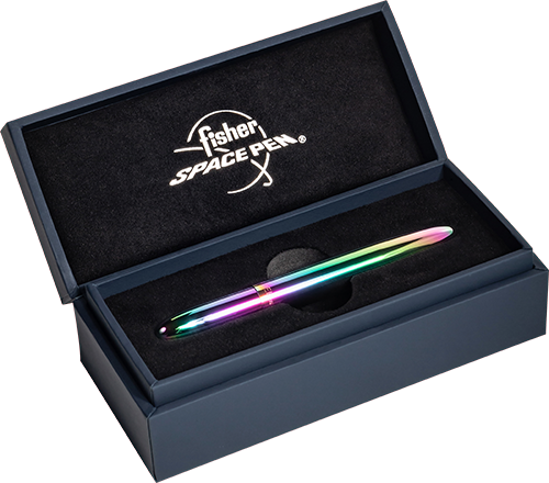 On January 13, 2022, what was once known as the Rainbow Titanium Nitride Bullet Space Pen, officially became SUPERNOVA. The perfect name chosen from a community campaign to give this pen an appropriate space-age title. Before Supernova naming creations conceived by the Fisher Space Pen community included Solar Flare, Dark Matter, Purple Haze, Aurora Borealis Green, Pink Nebula, Red Planet and Blue Moon. Special thanks to our loyal fans for helping us rename this space pen.